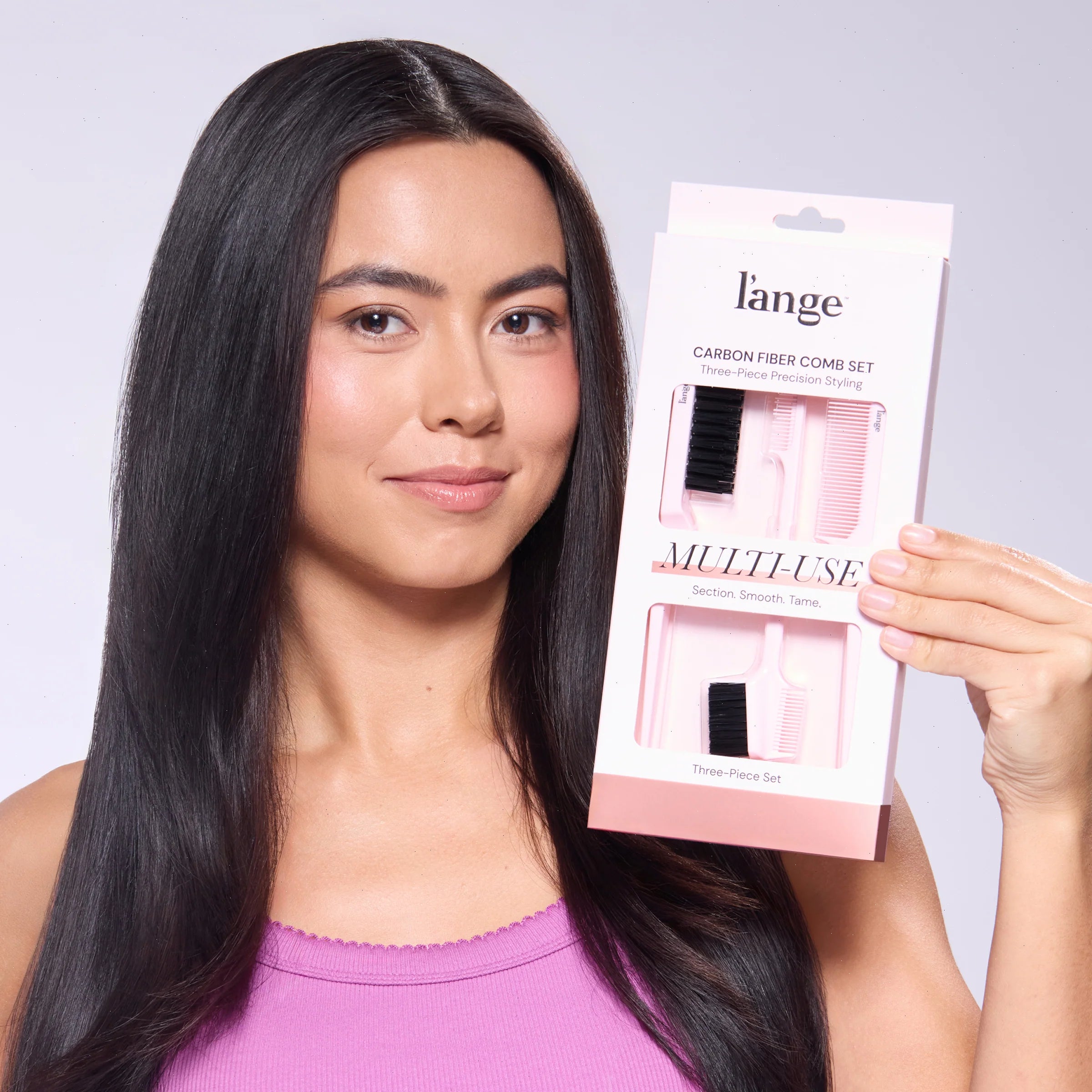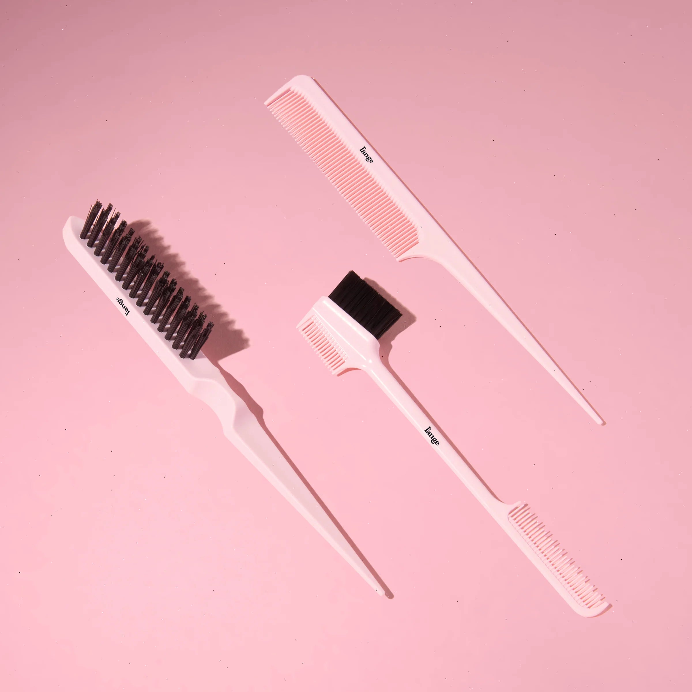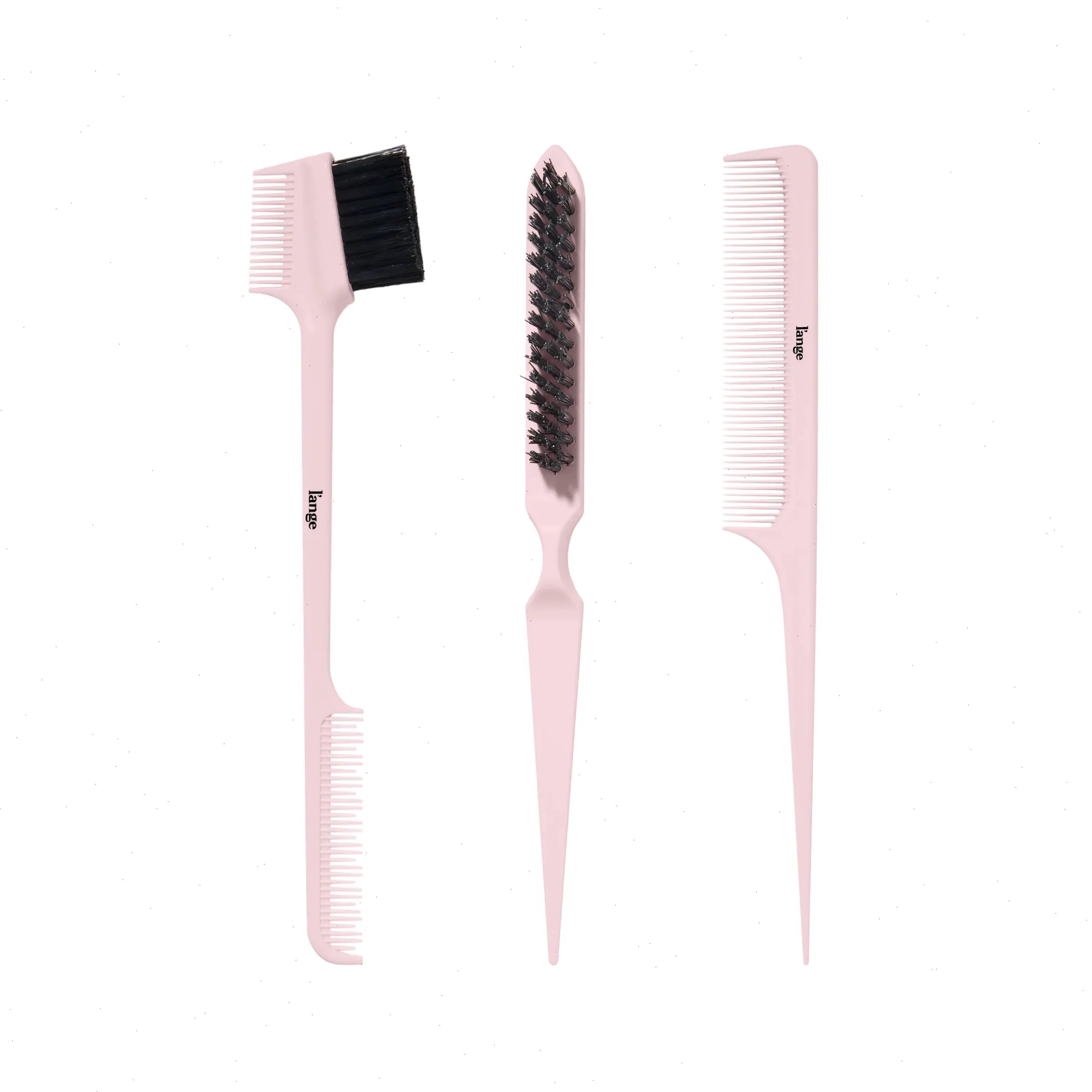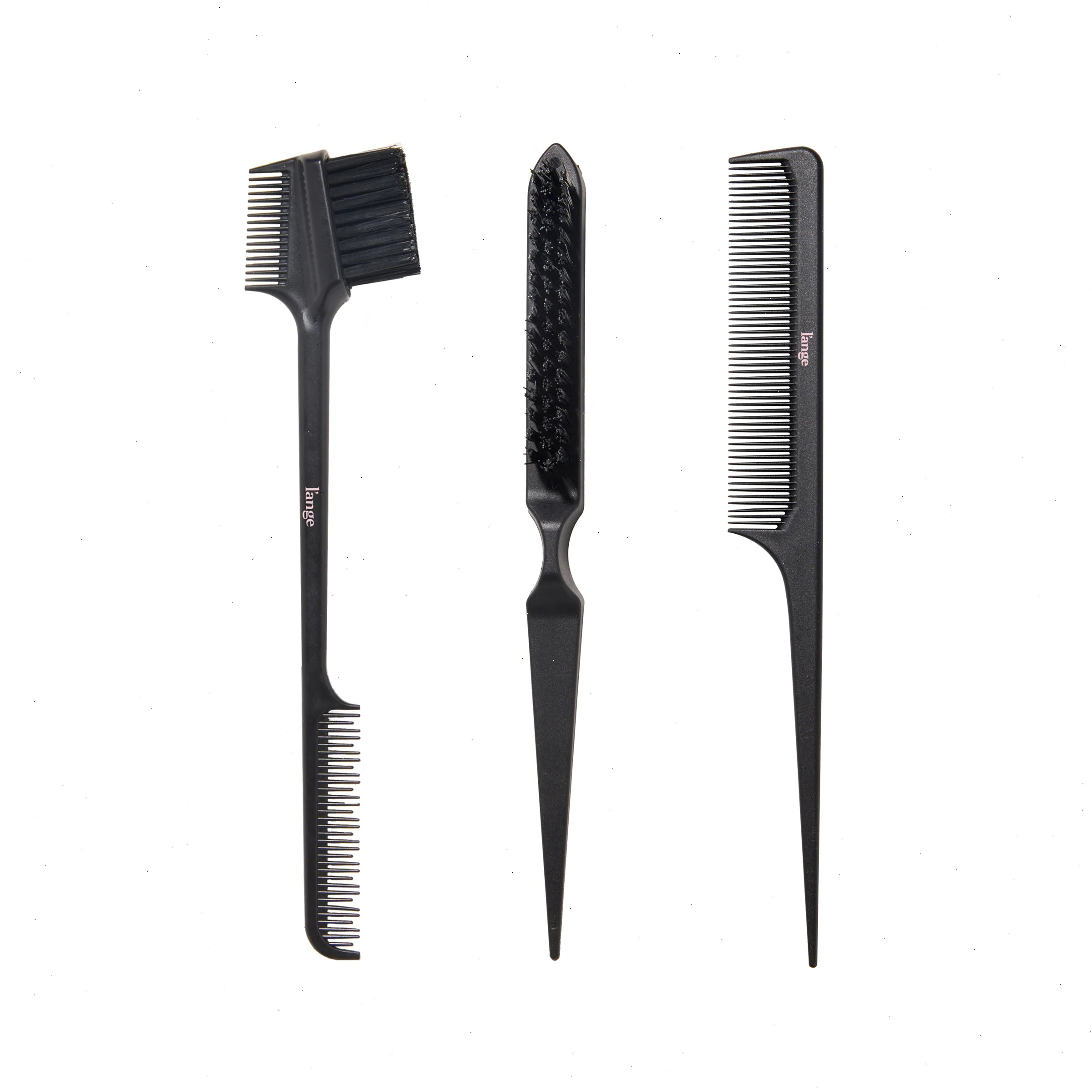 Section, smooth, and elevate your style with this three-piece styling kit designed to give you total control to master any look. Whether you're creating sleek, frizz-free finishes or boosting volume with a smooth, polished top layer, this set helps you achieve it all. Featuring a precision pin tail comb for parting and backcombing, a double-sided edge brush for shaping baby hairs and refining detail work, and a firm nylon bristle brush to tame flyaways without flattening your look. This kit is your go-to for clean, professional-level results at home.