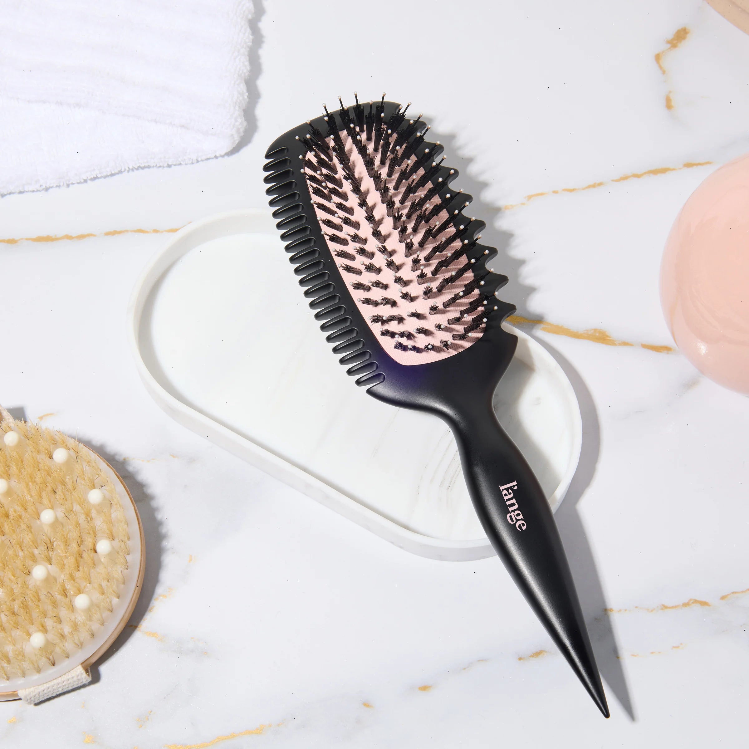 Two unique edges offer versatile results, boosting volume and enhancing curl definition. The nylon and boar bristle combination glides through tangles while minimizing breakage. Styling grooves along the back of the paddle help create a consistent curl pattern, while the hourglass handle with sectioning tip creates perfect parts. Whether you're boosting roots or creating defined curls with bounce, this styling tool delivers professional results with ease.