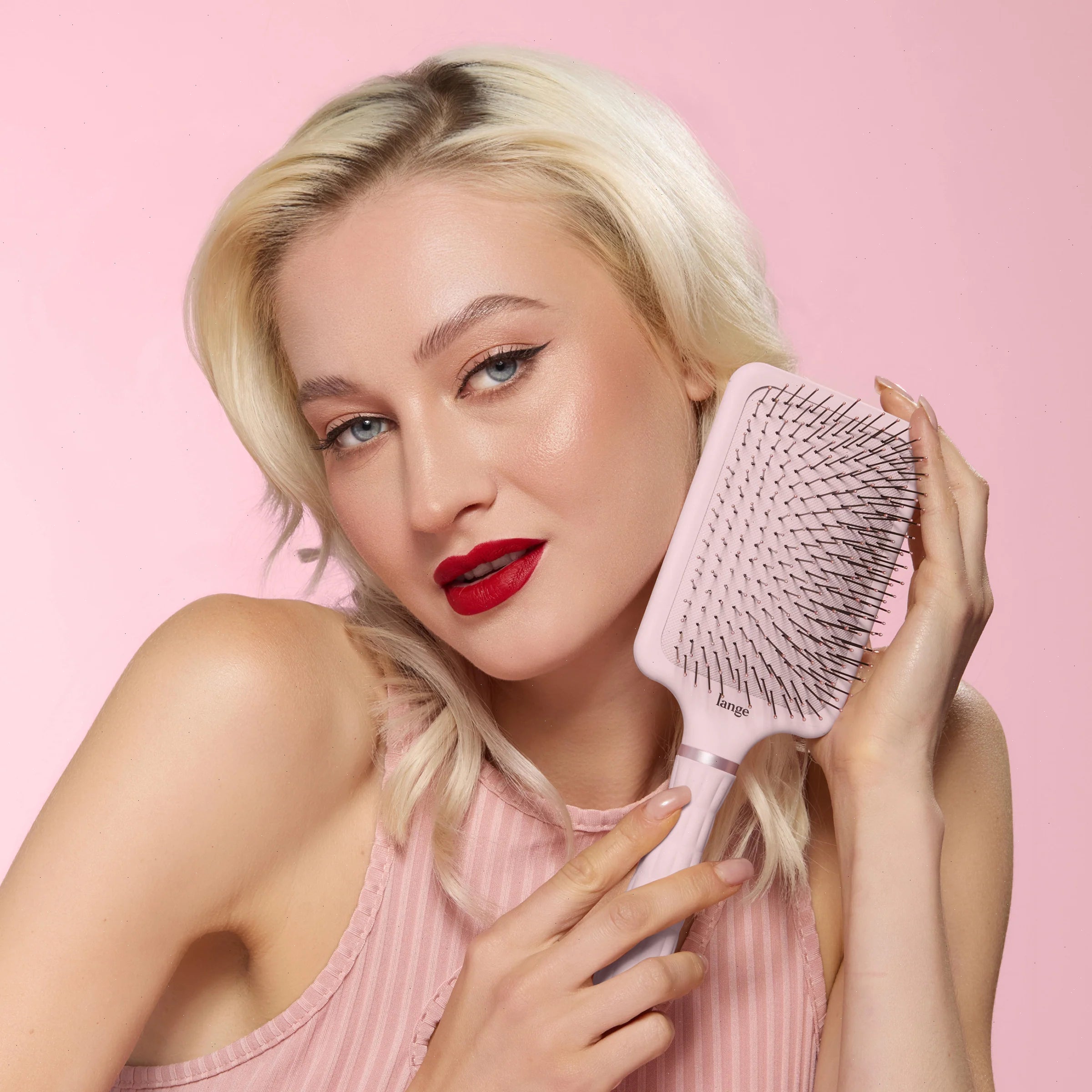 Meet your hair’s new BFF: The Detangling Paddle Brush. It takes your tresses from staticky to soft and smooth with flexible bristles that gently detangle, reduce snagging, and help minimize breakage. The rounded bristle tips massage the scalp as you brush, helping stimulate circulation. Its lightweight, no-slip handle and cushioned flat base make styling comfortable and effortless. Use it on damp or dry hair for flawless, everyday looks.