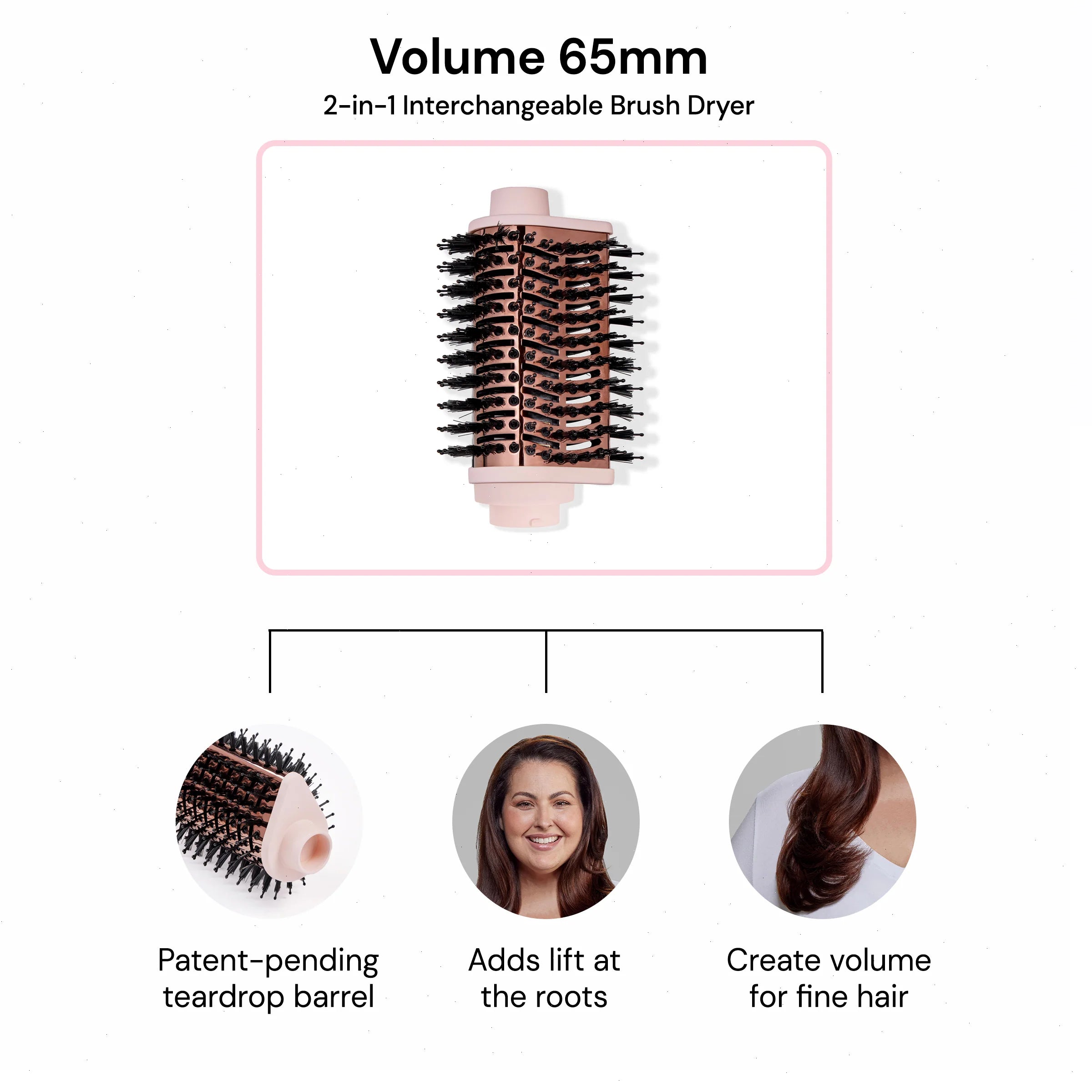 Turn up the volume with our 65mm, patent-pending teardrop shaped barrel. Multi-Volume Series makes it ideal for getting comfortably close to your roots, which makes it simple to smooth out any hard to reach spots. The dual-sided 65mm barrel helps you elevate your roots, tuck or flip your ends, and smooth out unwanted texture and frizz. Tug-resistant bristles grip the hair, giving you just the right amount of tension to create smooth styles with incredible body and lift. This titanium barrel transforms hair into shiny, frizz-free perfection. Additional styling features include: combination synthetic boar and nylon bristles, 360° vented airflow, & protective cover.