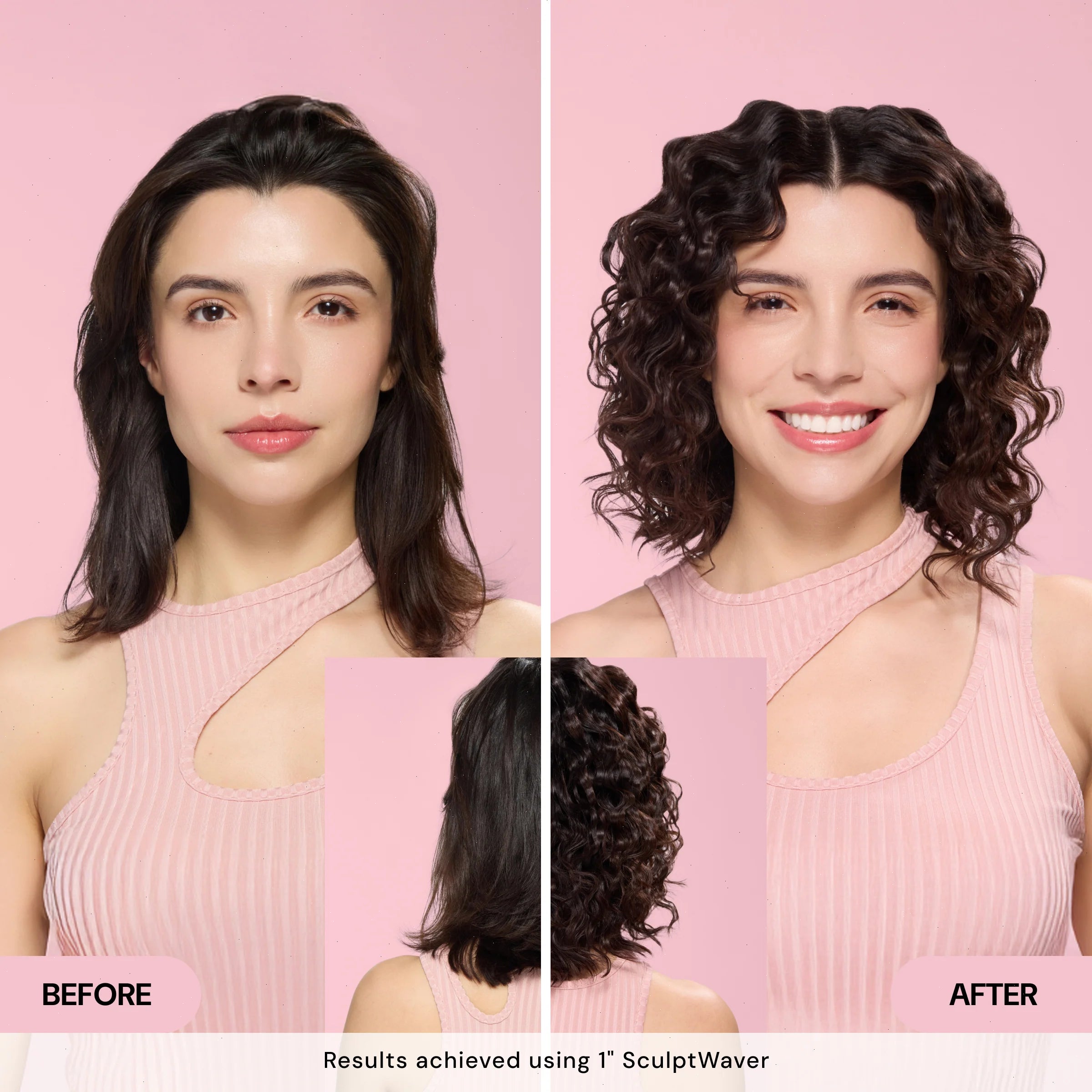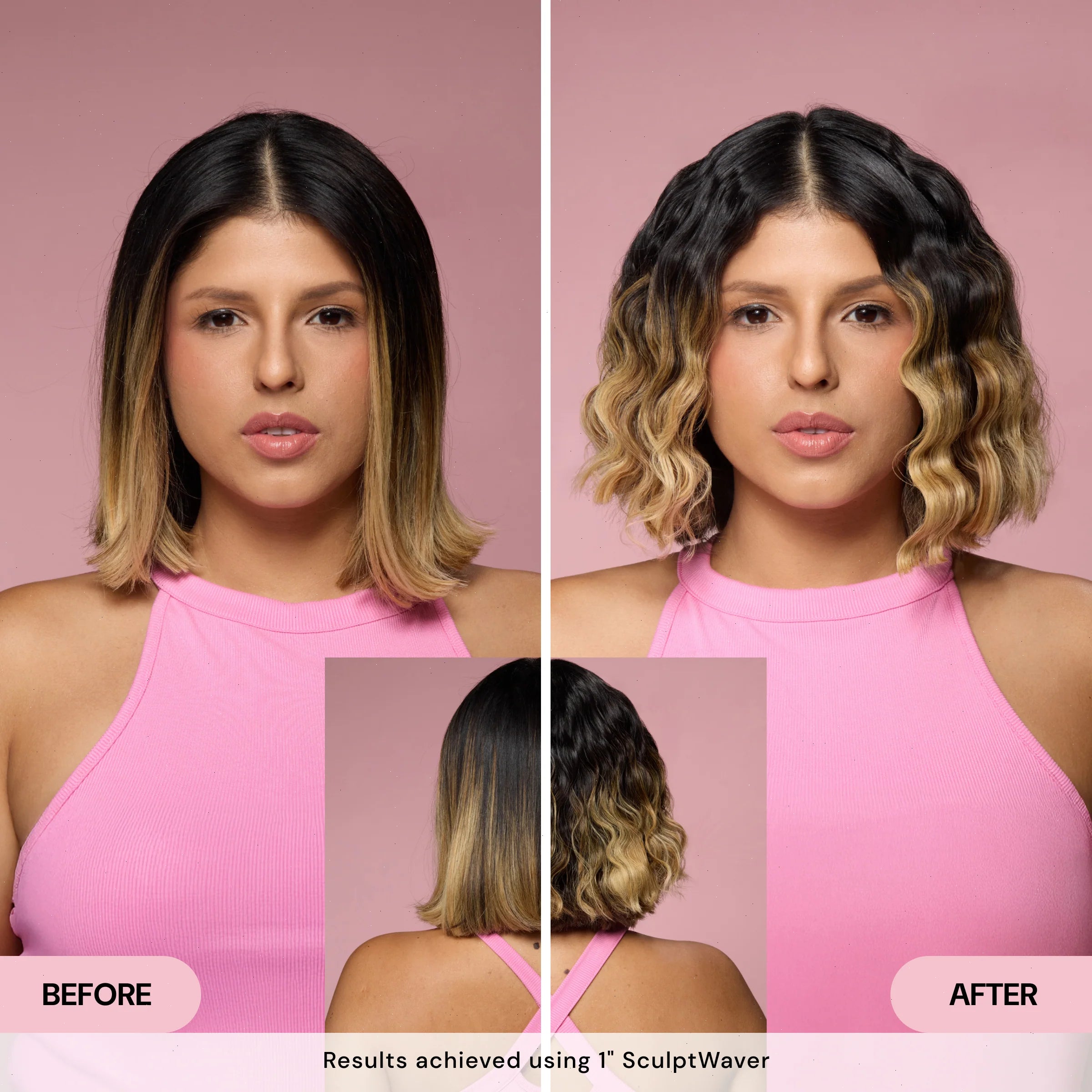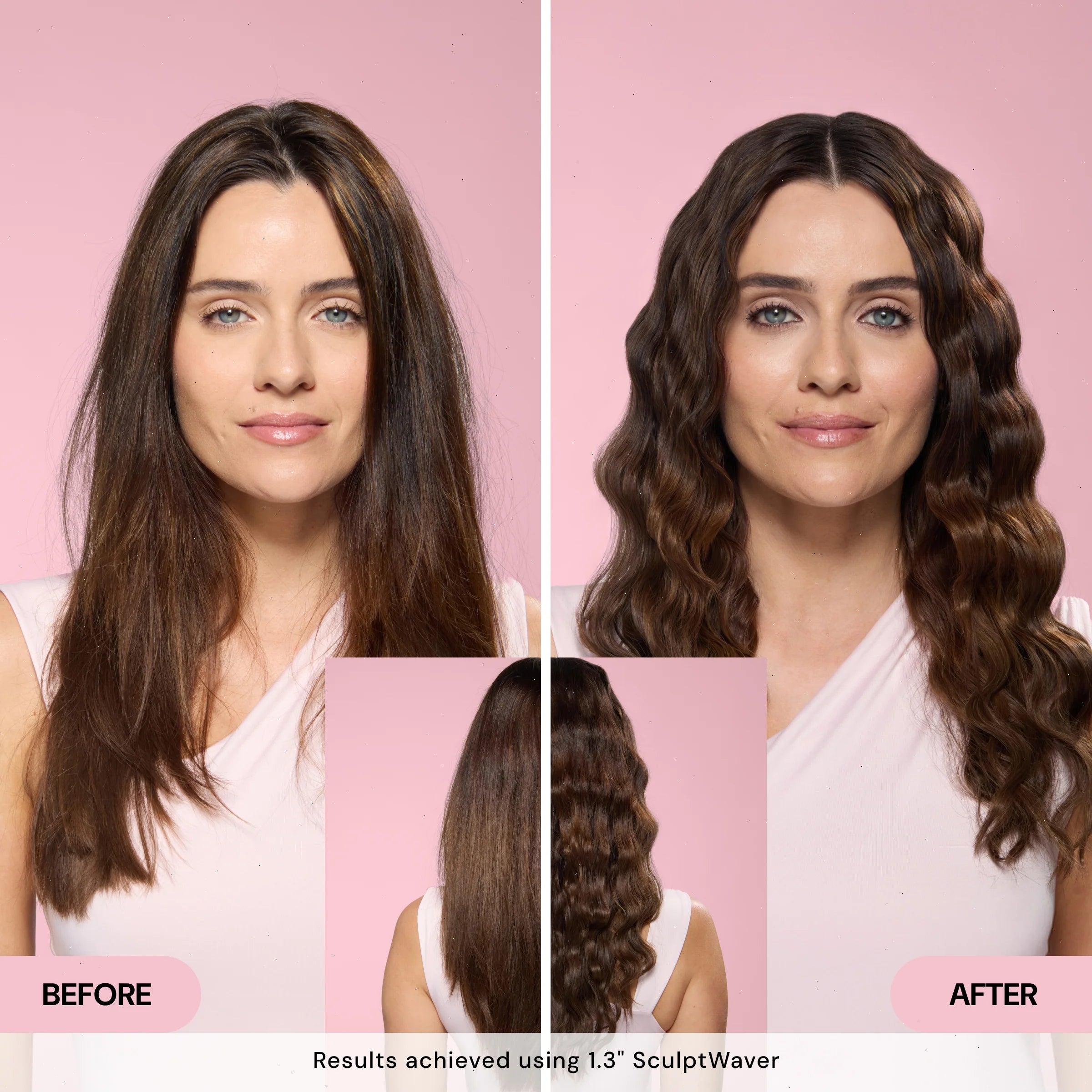 Sculpt bold texture and shape natural, defined waves in one clamp. The SculptWaver is a modern, high-performance crimper that features three insulated barrels with titanium plates to safeguard your hands from burns and shape the perfect waves without snagging. Its clever, easy-to-clamp design makes your styling session quick and effortless. Unlike crimpers of the past, the SculptWaver gives hair the softest bends and a healthy-looking finish thanks to its advanced negative ion technology, which boosts shine and reduces frizz. Choose from four timer functions and various heat settings from 280°F to 430°F to customize your looks and add lasting dimension.