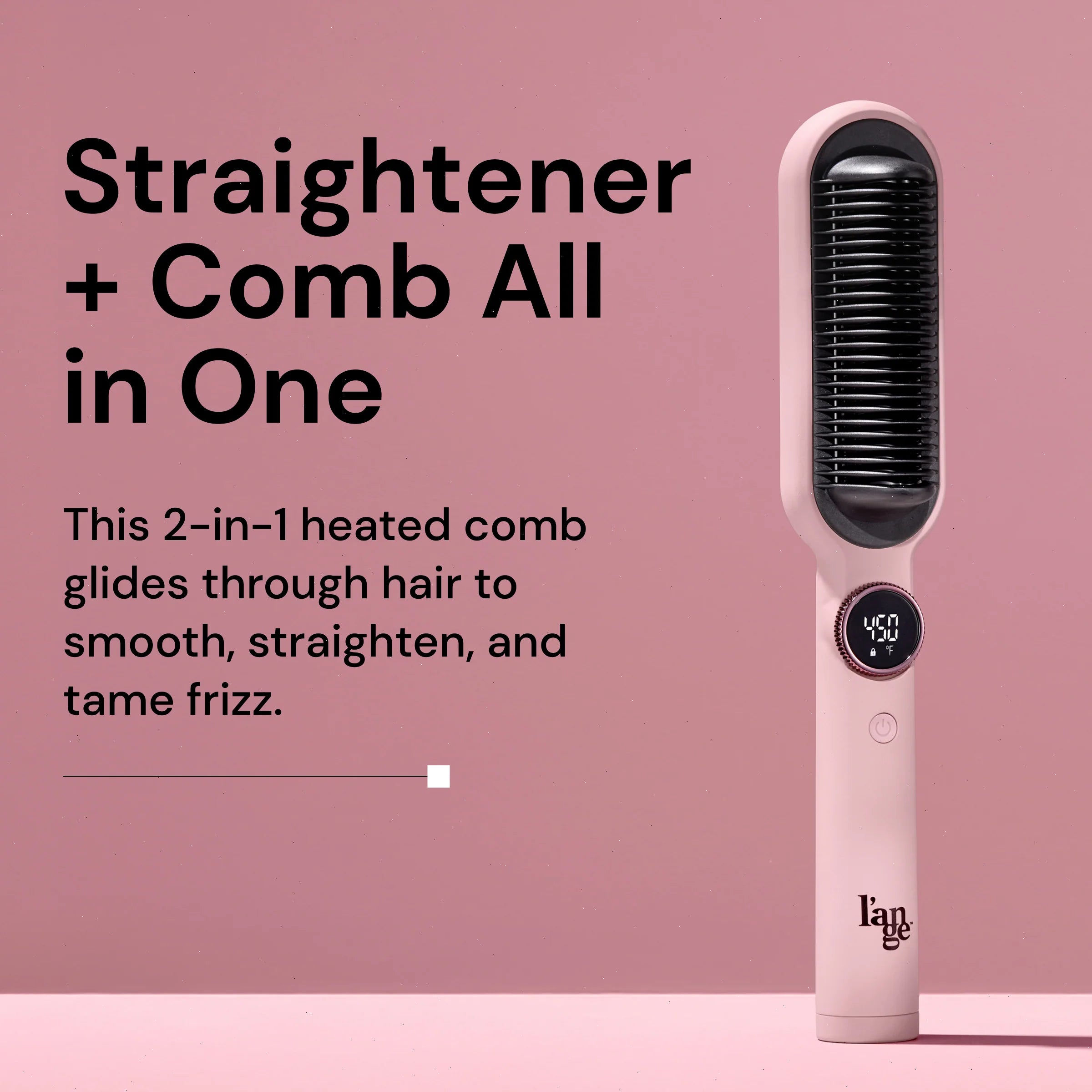 Accentuate your hair’s shine and create smooth styles with Smooth-It. This 2-in-1 straightening comb makes achieving smooth, straight styles quick and effortless. Negative ion technology helps lock-in shine while eliminating unwanted frizz. Customize styles with a digital dial that controls temperature (230°F-450°F). Additional styling features include a soft-touch finish handle, protective heat shield for safe styling, professional length 360° swivel cord, 60-minute auto shut-off, and dual voltage for worldwide use.