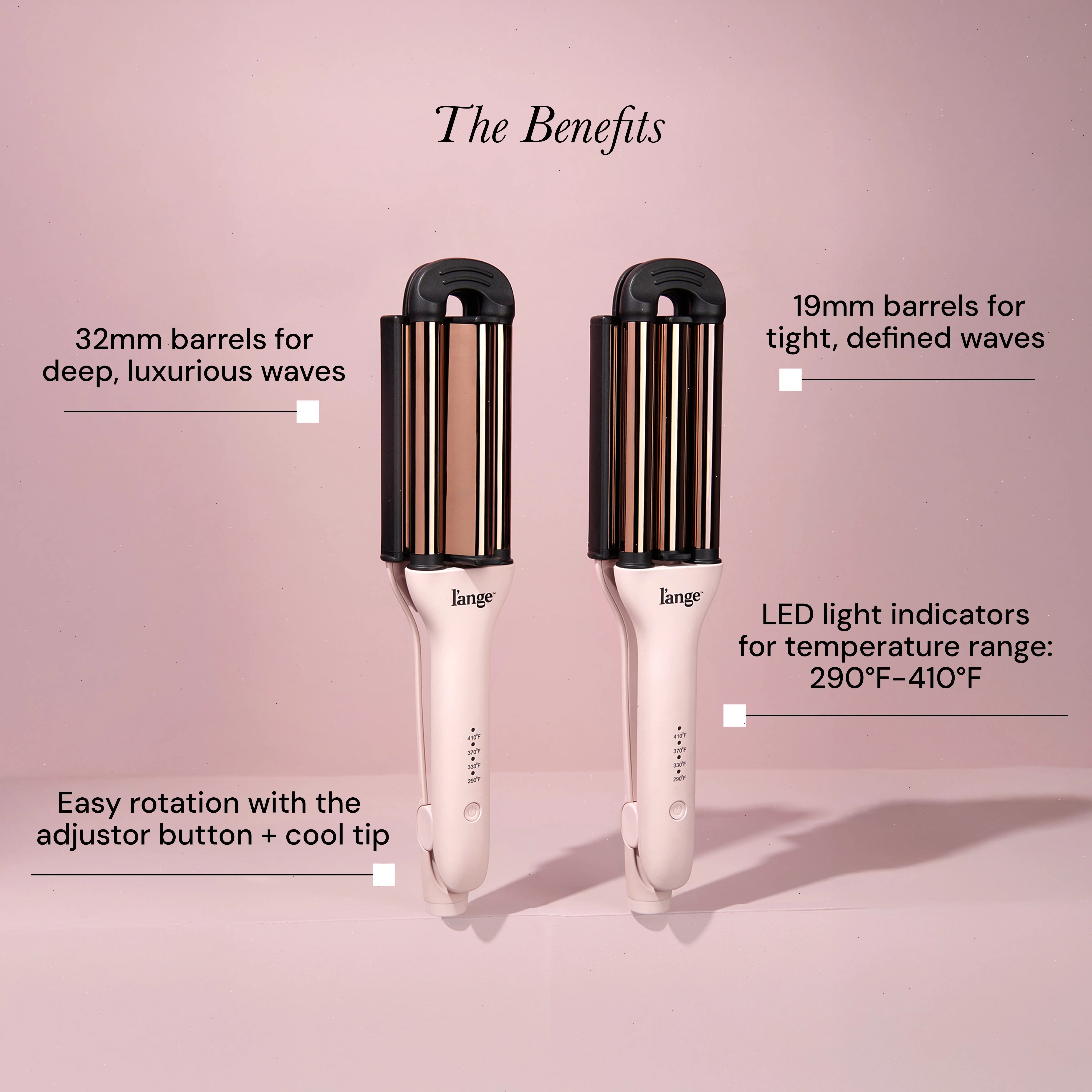 Create luxurious waves or tight crimps with ease. VersaWaver is a game-changing adjustable titanium waver, designed to give you two distinct styles in one tool. With a quick twist of the barrel’s cool tip, effortlessly switch between 19mm waves for tight, defined texture or 32mm deep waves for soft, luxurious volume. Crafted with even-heating titanium plates, it delivers long-lasting results, boosting volume in fine and medium hair while enhancing body and movement. Customize your styling experience with four heat settings (290°F-410°F), all controlled with simple, intuitive controls. Whether you’re going for effortless, deep cascading waves or a more defined look, the VersaWaver has you covered.